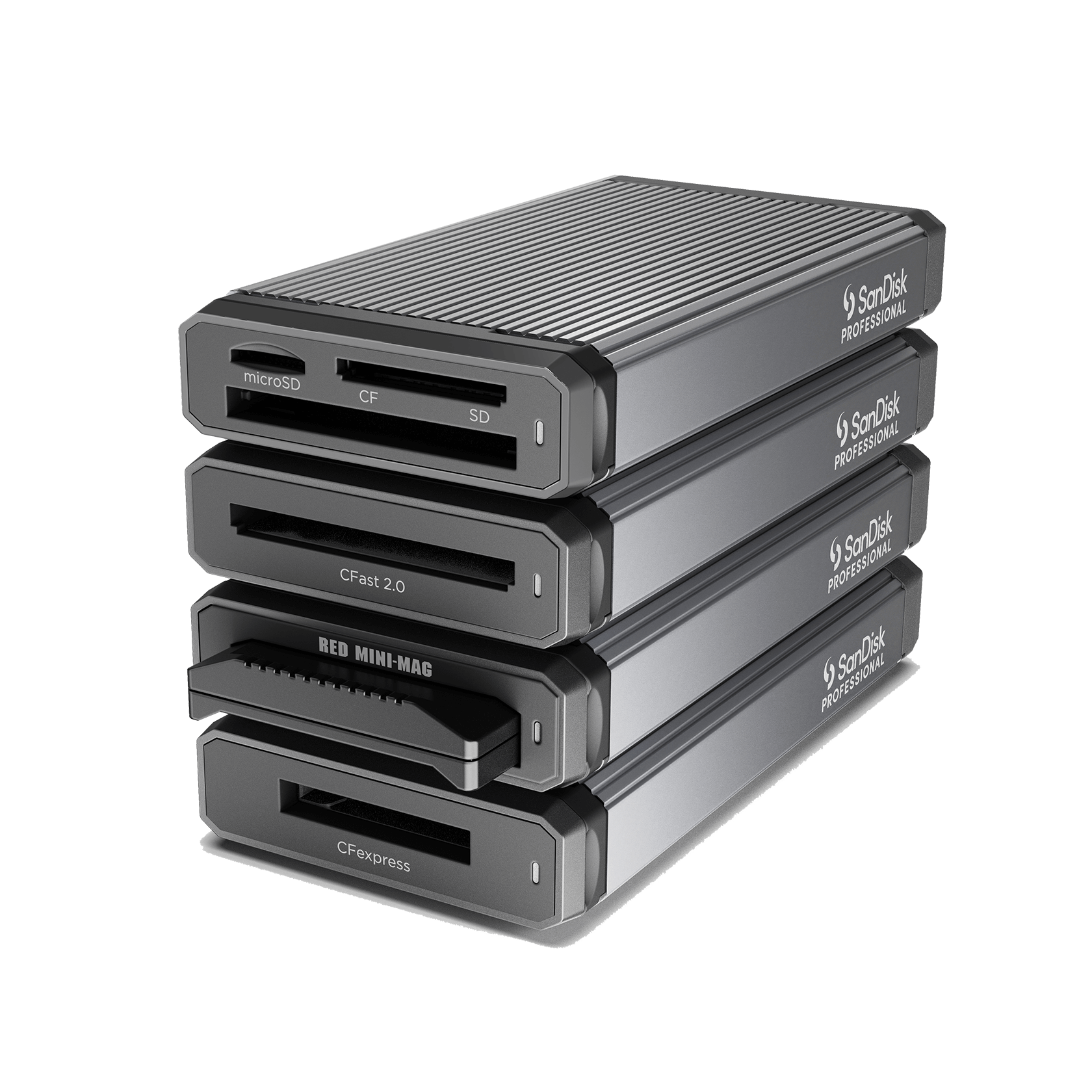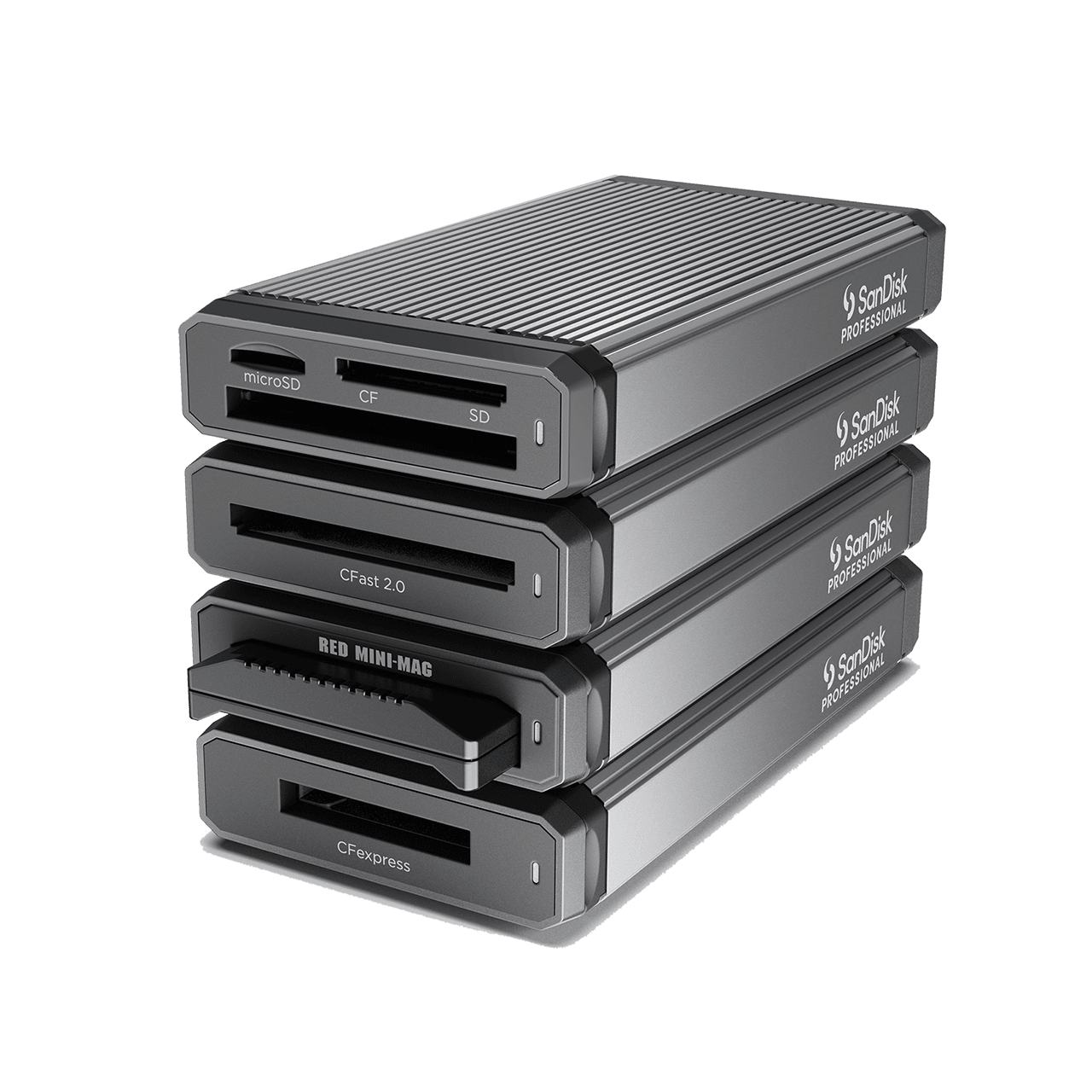 Pair this and our other PRO-READER devices with the SanDisk® Professional PRO-DOCK 4 reader docking station for scalable, simultaneous offloads that help to maximize productivity.