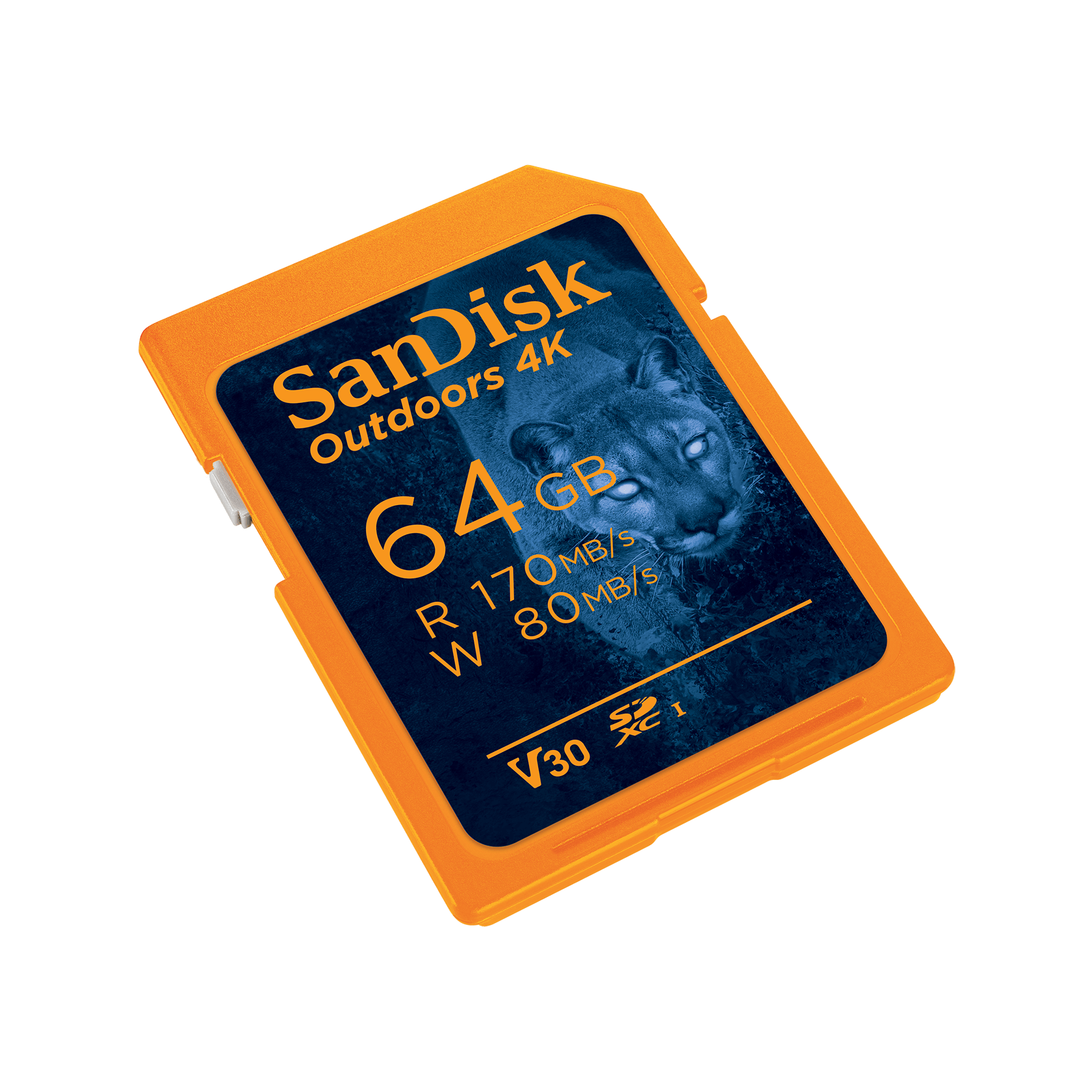 Just as this vivid hue protects you, the blaze orange card enclosure, helps ensure the SanDisk Outdoors 4K SD UHS-I card card stands out on all sides whether dropped on the forest floor, in fields and water, or just when used on foggy or cloudy days at dawn and dusk.